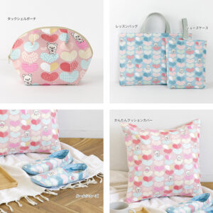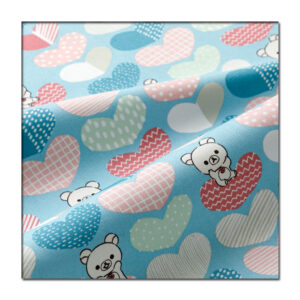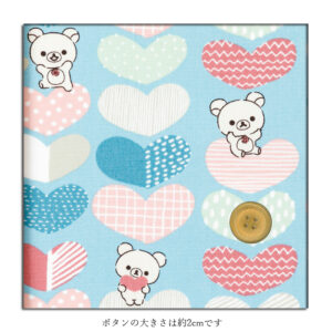 コリラックマとそのおともだちのチャイロイコグマが、ポップでわくわくするようなハート柄にぴったりマッチしています。