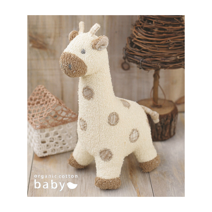 ベビーにもやさしい、オーガニックコットン(無農薬有機栽培綿)100%。落ち着いた色合いがおしゃれでかわいい、キリンのぬいぐるみ手作りキットです。