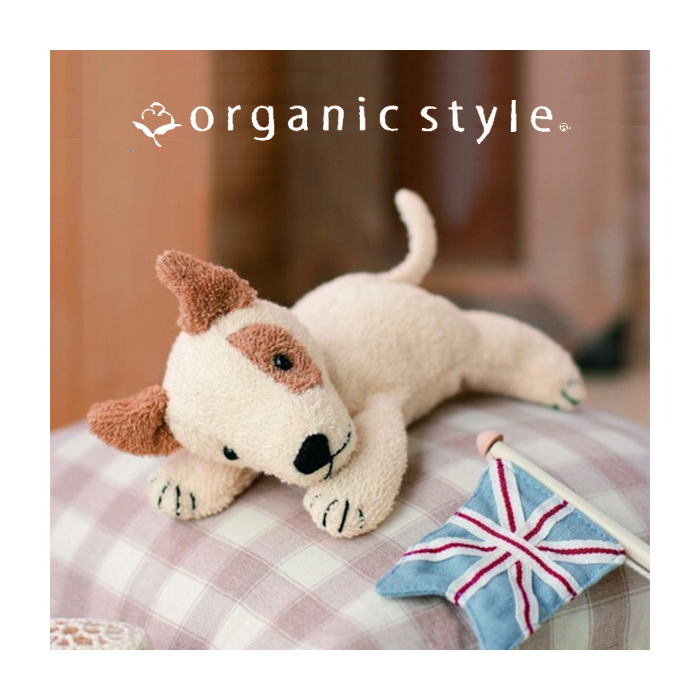 お肌に優しいオーガニックコットン(無農薬有機栽培綿)100%の生地で作るくたくた感がかわいい犬のぬいぐるみ。