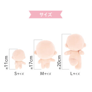 「てづくり推しぬい BOOK」掲載の型紙で作成した、S・M・L の 3 サイズ展開のぬいのボディです。