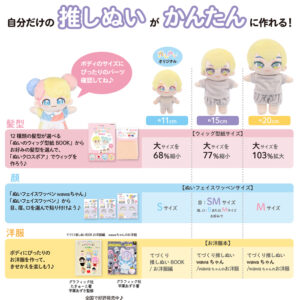 お洋服は、11cmは「てづくり推しぬいBOOK」、15cm・20cmは「てづくろ推しぬいwawaちゃん」から作って、きせかえを楽しもう♪