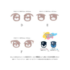 ぬい(ぬいぐるみ)の顔の、小サイズ用のフェイスパーツの刺しゅうワッペンです。