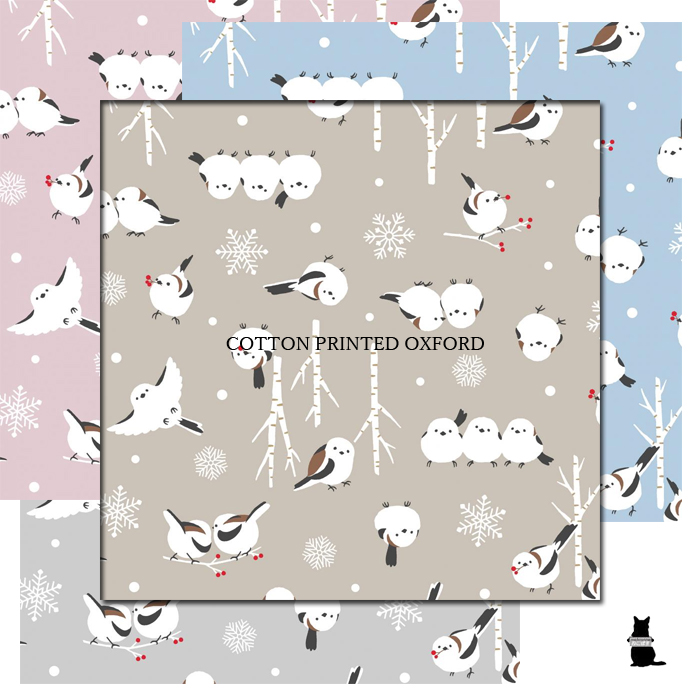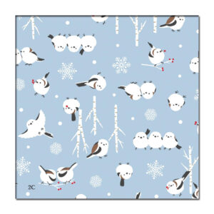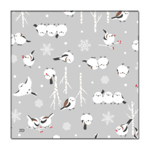シマエナガと白樺、雪の結晶が可愛らしい!