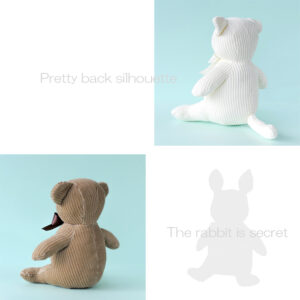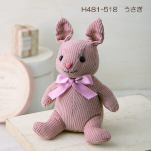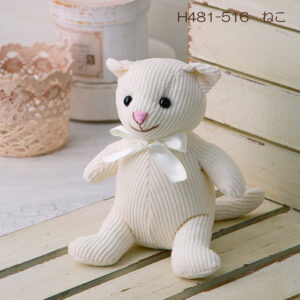 さらさら手触りの良いコーデュロイ生地とサテンのリボンで、上品な印象のかわいいぬいぐるみ。