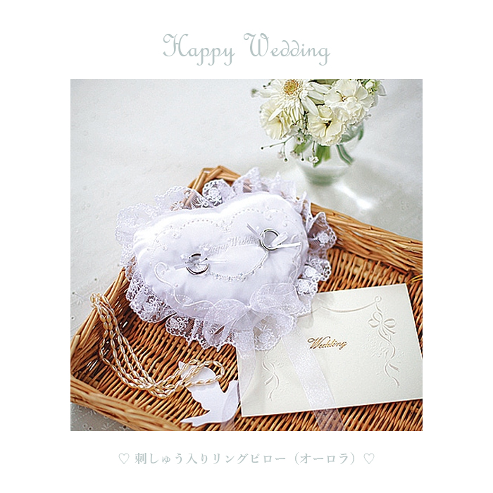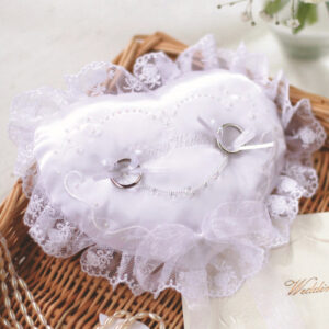 レースの装飾がかわいい刺しゅう入りリングピローの手づくりキット。