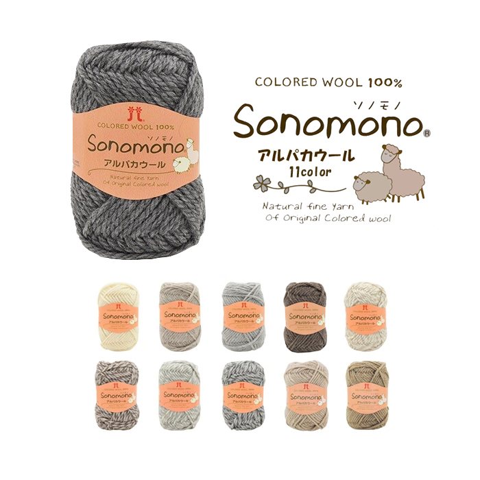ソノモノアルパカウールはアルパカの豊富なカラーとぬめり感のある肌触りの良さが特徴。