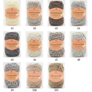 ※ソノモノシリーズは、天然のカラードウールをそのまま製品化していますので、生産の時期により同じ色番でも色目が若干異なる場合があります。 着分をまとめてお求めいただくことをおすすめいたします。