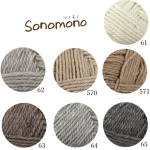 ※ソノモノシリーズは、天然のカラードウールをそのまま製品化していますので、生産の時期により同じ色番でも色目が若干異なる場合があります。 着分をまとめてお求めいただくことをおすすめいたします。