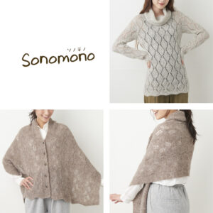 ソノモノヘアリーはアルパカとウールを起毛させて作られており、軽さと風合いの良さ、そして温かさを兼ね備えています。