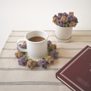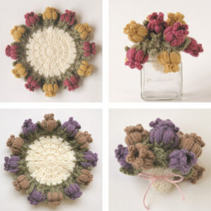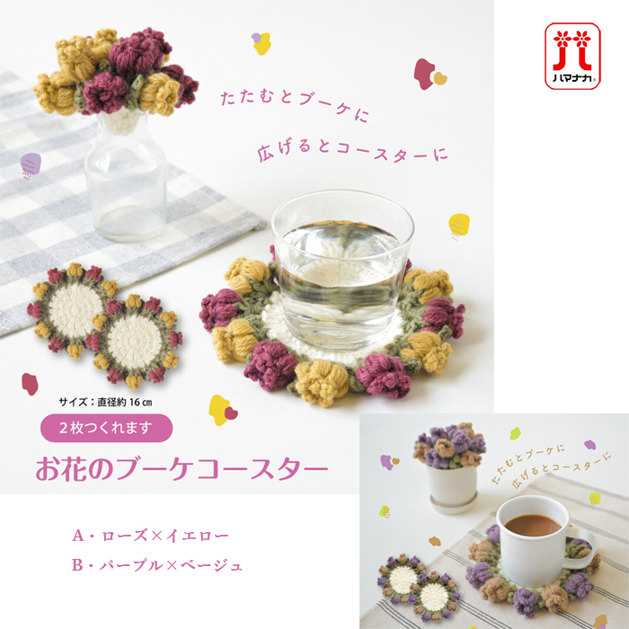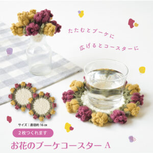 大好評のたたむとブーケ、広げるとコースターになる「ブーケコースター」が編めるキットです。